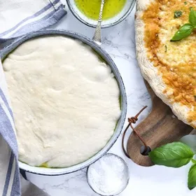 Nem grundopskrift på hjemmelavet pizzadej med olivenolie