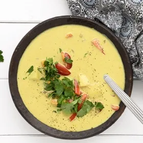 Cremet karrysuppe med kylling, grøntsager og piskefløde