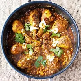 Hjemmelavet gul karry med kyllingelår, gurkemeje og frisk koriander